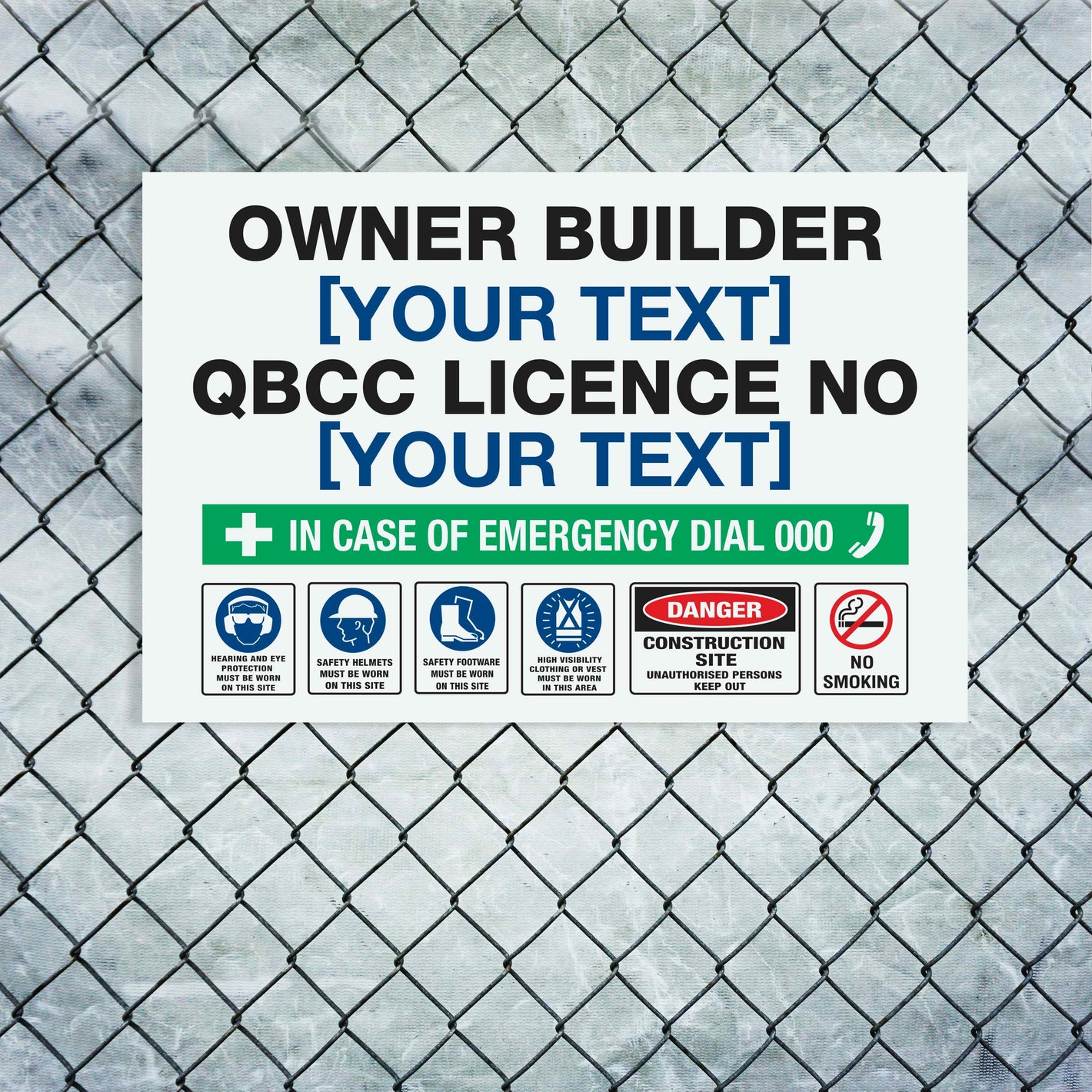 We offer you the ability to customise many of our site signs with your company name or logo and site details. This gives the sign a professional look and ensures the details are clear, legible and won’t fade or rub off. Alternatively we can leave the fields blank for you to add the details yourself.