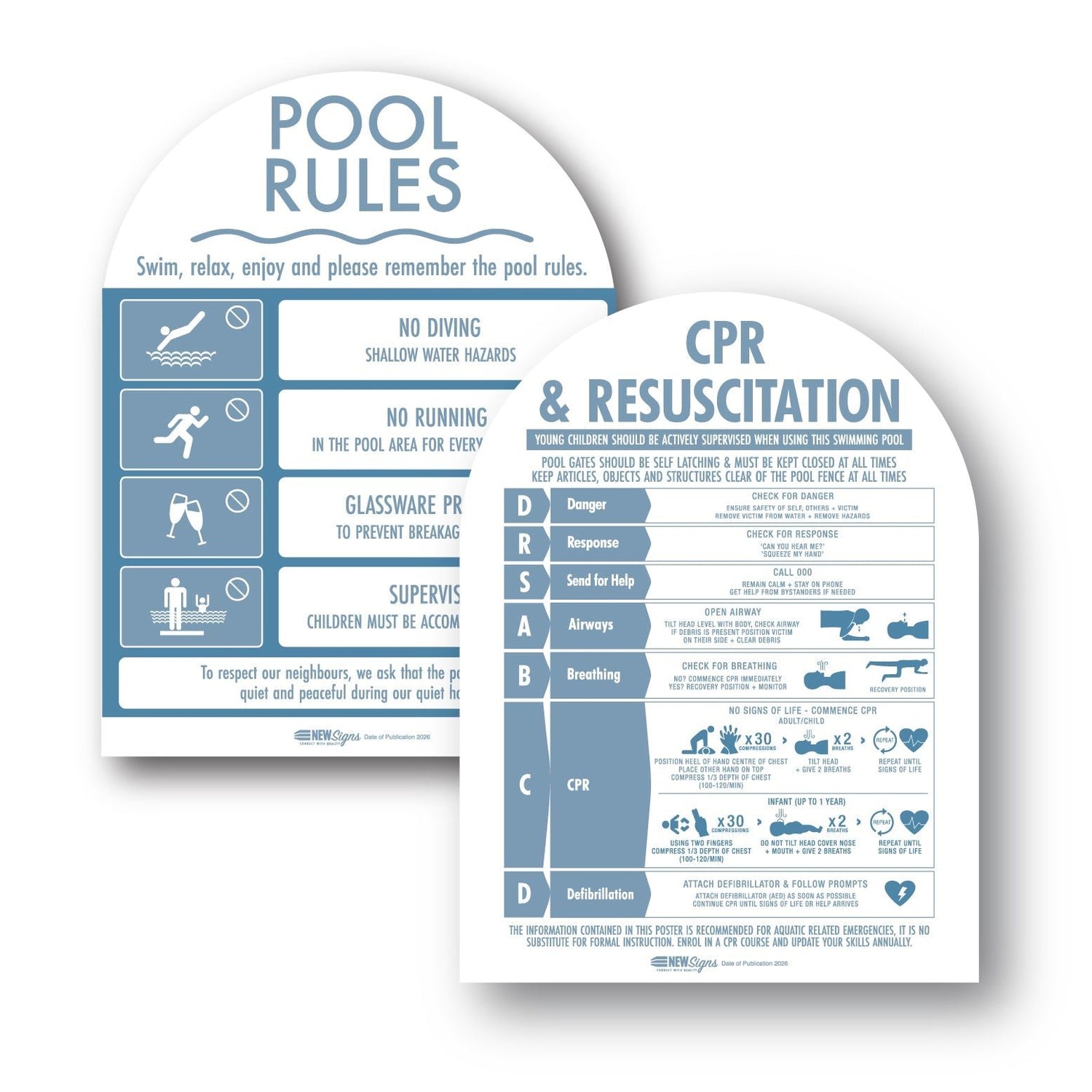 Whether you’re updating existing signage or installing new CPR signs, New Signs provides durable, compliant and highly visible solutions for every environment. Explore our full range today - from standard CPR signage to the Premium Pool Safety Sign Range, combining modern design with life-saving clarity.