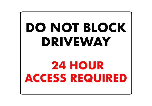 Do Not Block Driveway 24 Hour Access Required Portrait Sign