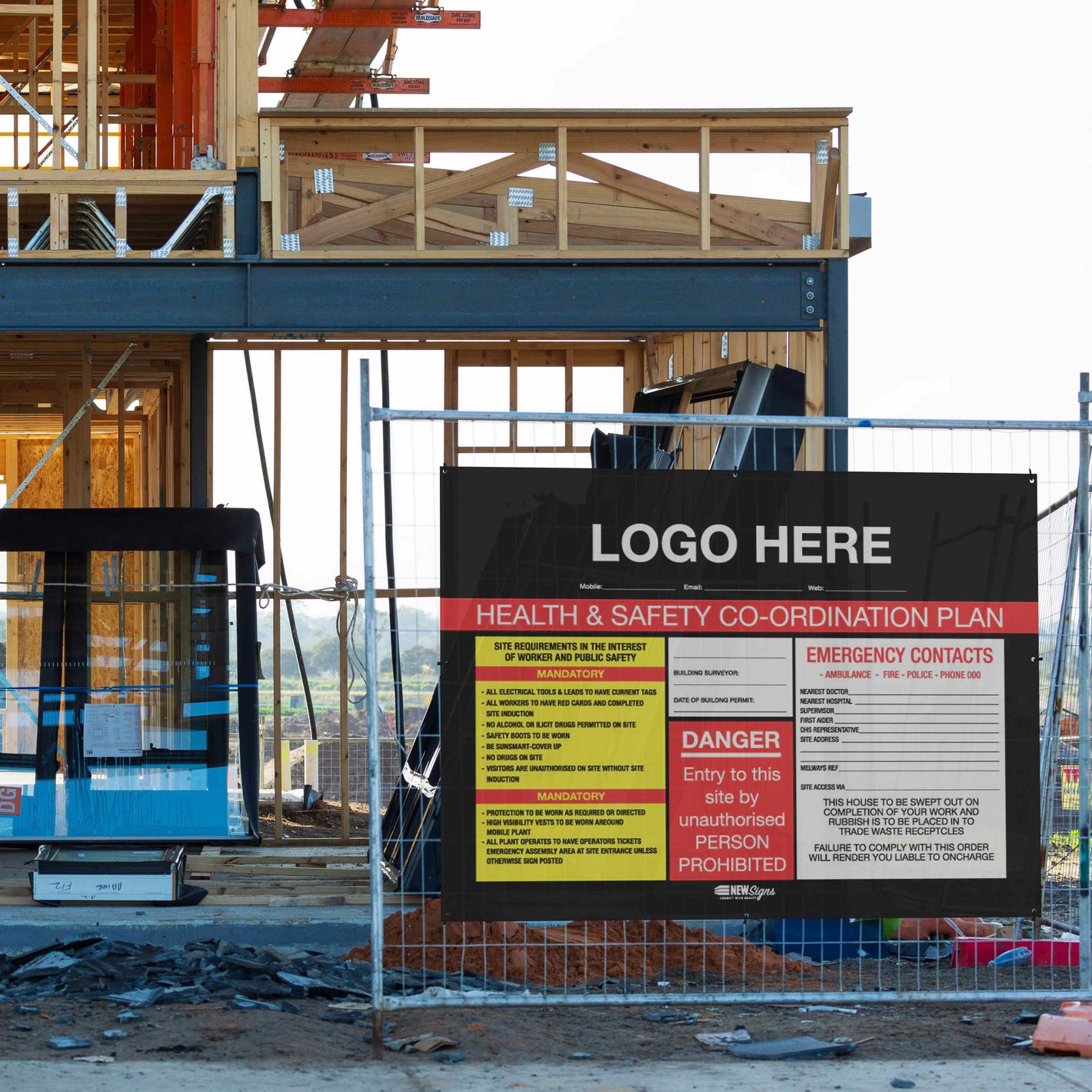 Construction Site Entry Sign Health and Safety Danger Co-Ordination Plan - Mesh Banner