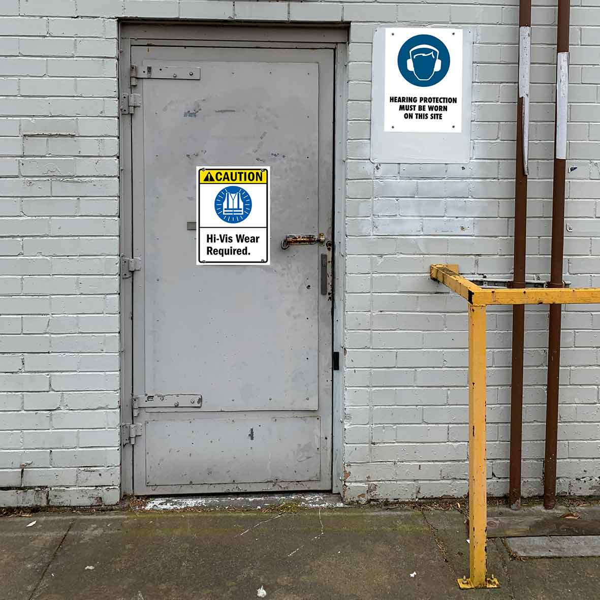 Is a corrugated polypropylene that is ideal for short to medium term outdoor use on building and construction sites. Corflute safety signs are commonly fixed to timber or chain wire hoarding fences and internal locations around building sites. The corflute used is 5mm thick and has UV resilient digitally printed graphics applied.