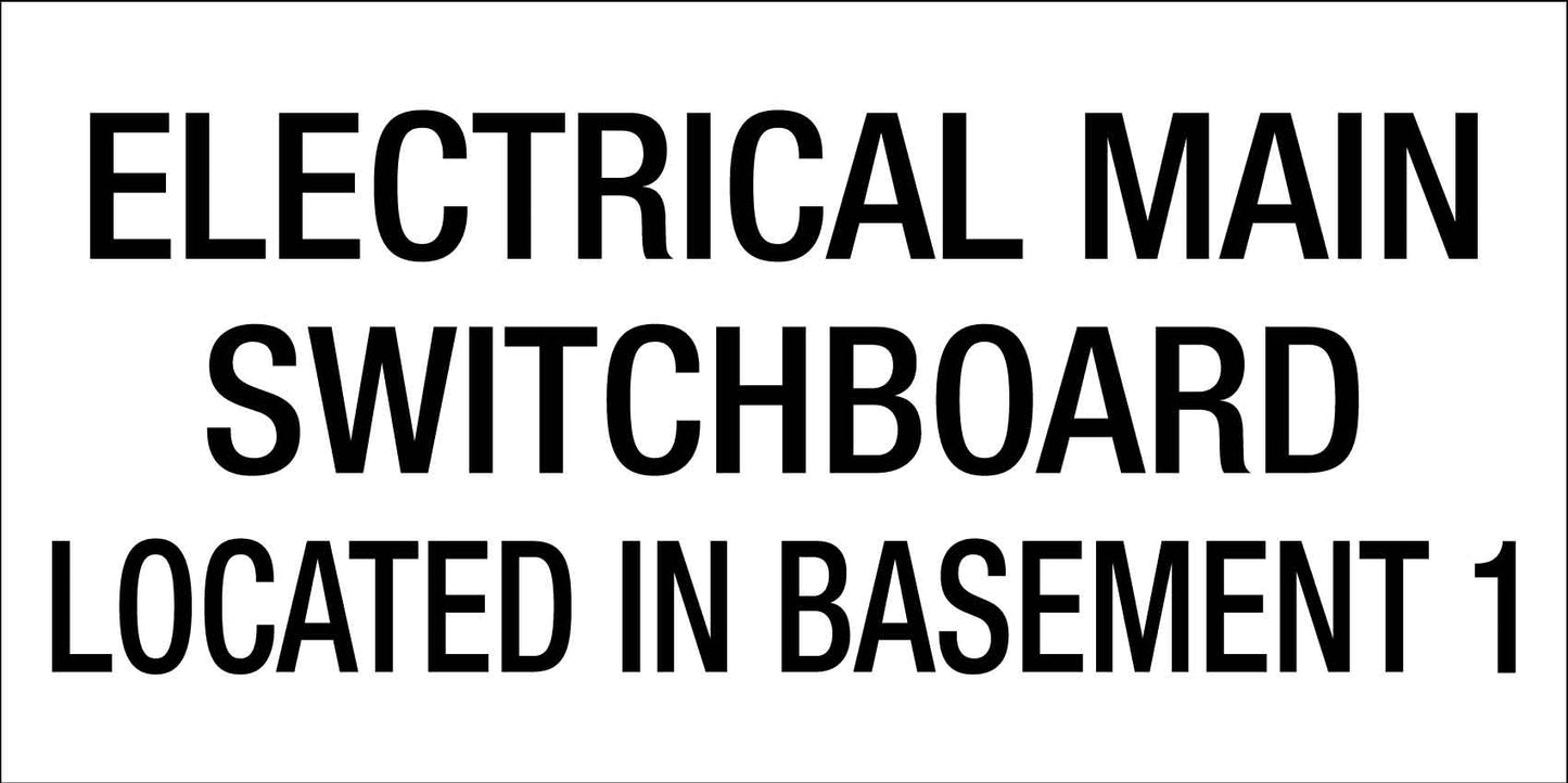 Electrical Main Switchboard Located In Basement 1 - Statutory Sign
