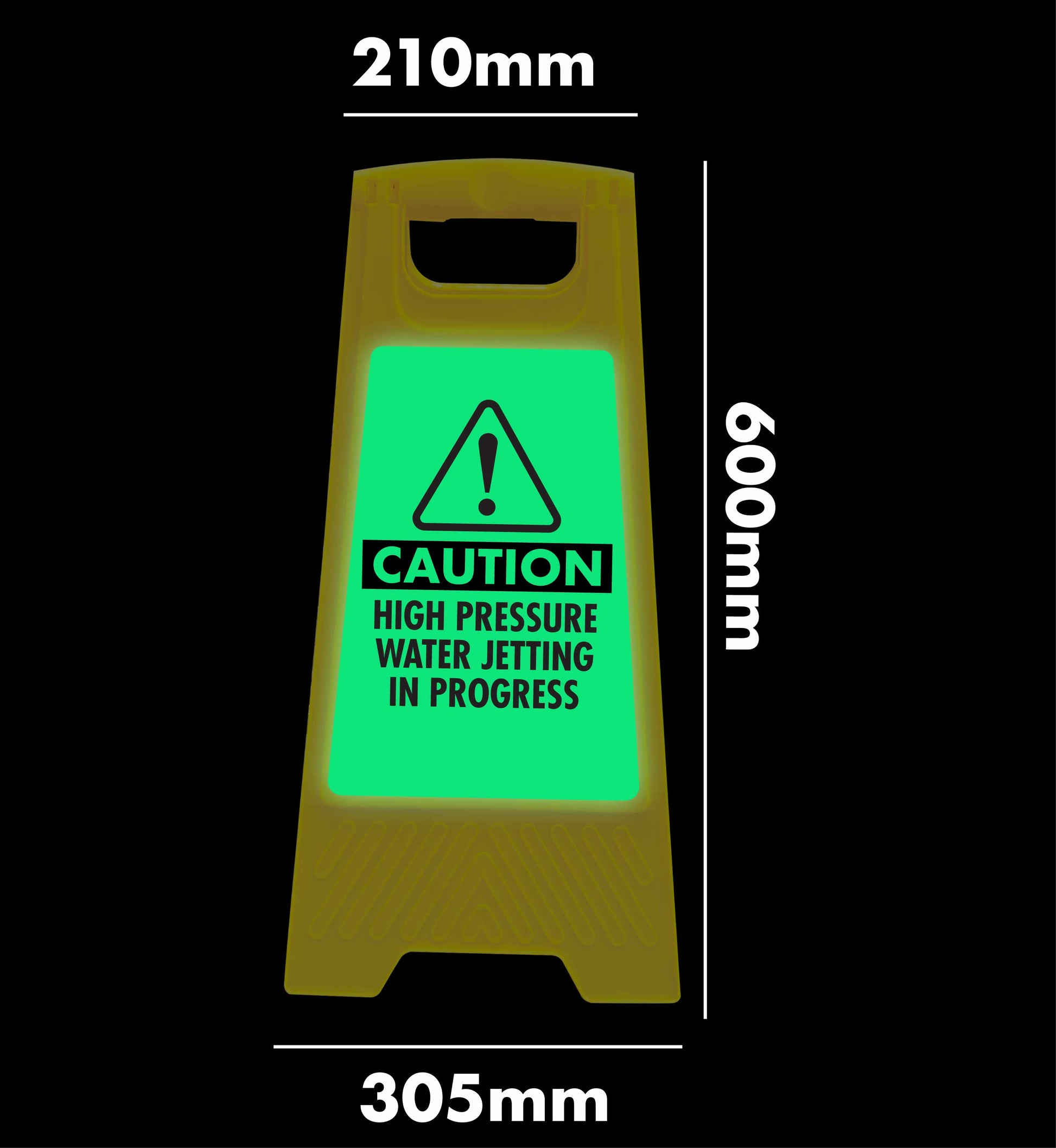 Glow In The Dark - Yellow A-Frame - Caution High Pressure Water Jetting In Progress