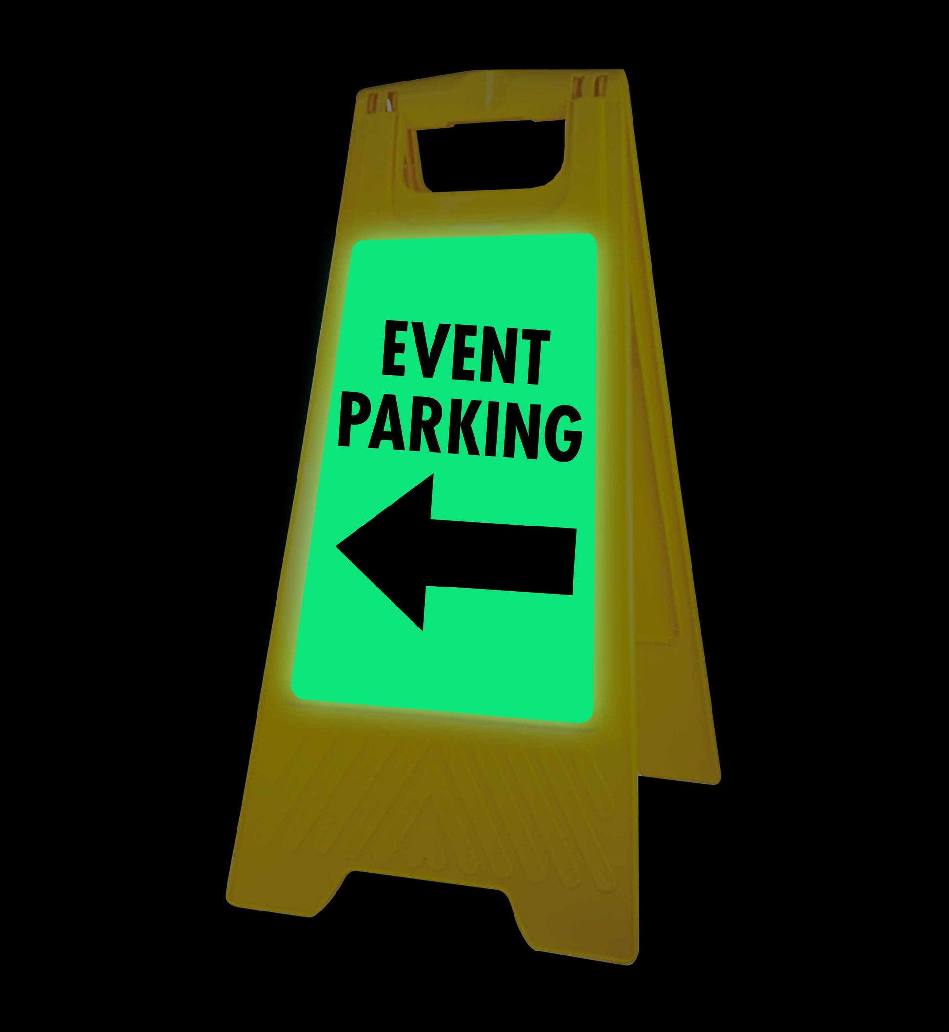 Our iconic Yellow A-Frame signs just got a powerful upgrade: Glow in the Dark visibility.