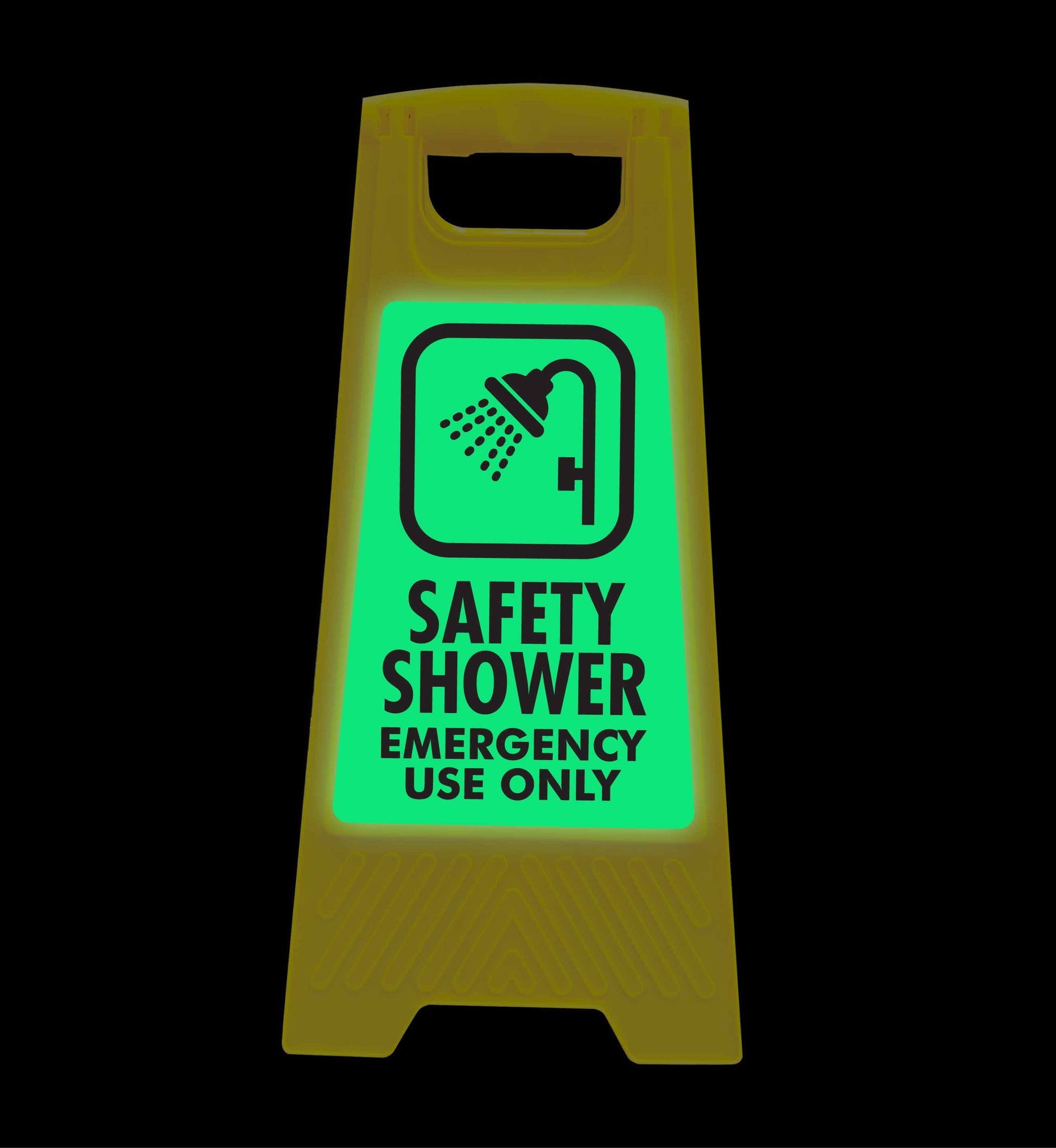 Glow In The Dark - Yellow A-Frame - Safety Shower Emergency Use Only