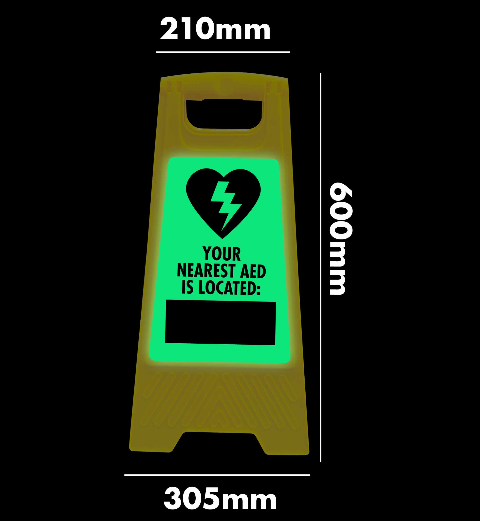 Glow In The Dark - Yellow A-Frame - Your Nearest AED is Located