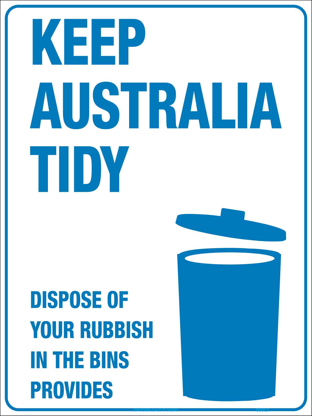 Keep Australia Tidy Dispose of Your Rubbish in the Bins Provided Sign