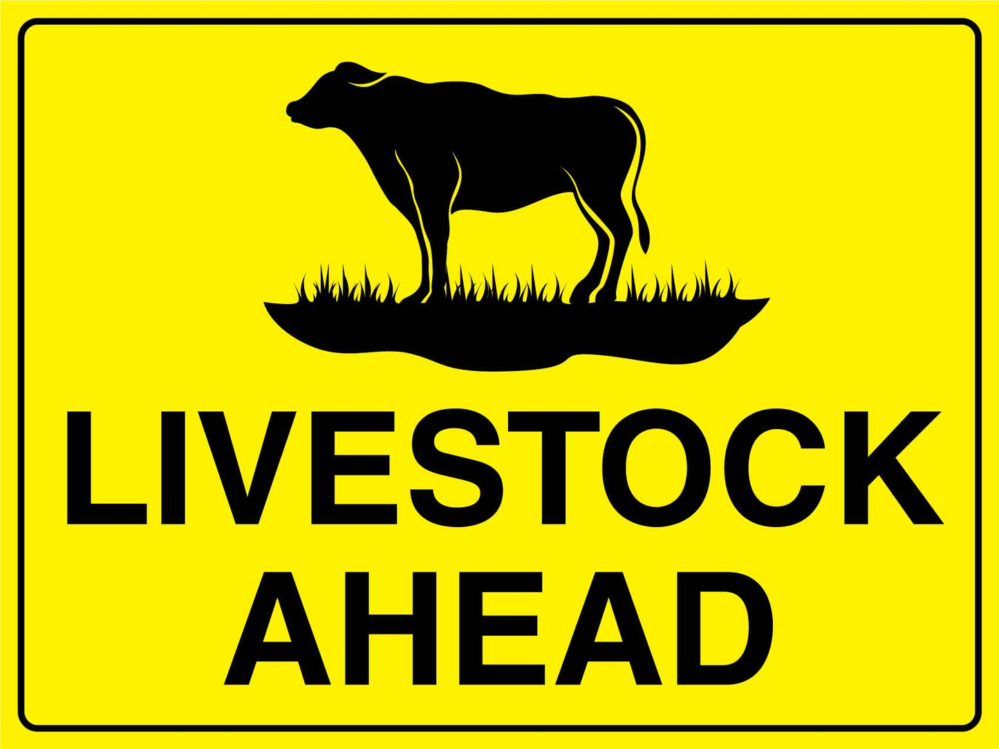 Livestock Ahead Bright Yellow Sign