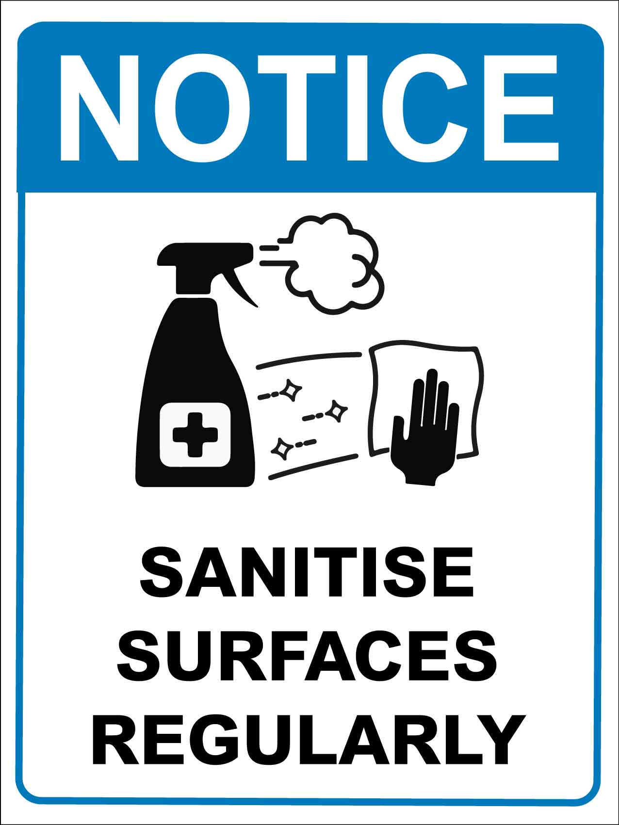 Notice Sanitise Surfaces Regularly Blue Sign