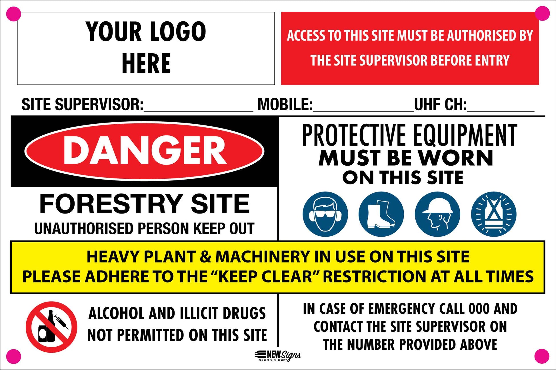 This sign includes limited customisations. If you require a fully custom site entry sign specific for your site or require alterations to an existing sign on our site you can order it online though our Custom Signs page or email your requirements to admin@newsignsgroup.com.au for a quote.