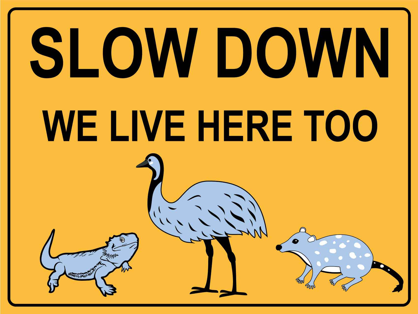 Slow Down We Live Here Too Lizard Quoll Emu Sign